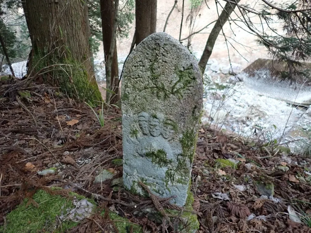 三面観音像、加子母から王滝村滝越地区までの間には石仏観音像が三十三体奉られていた。平成14年に結成された地元有志の「木曽越古道と三十三観音研究会」が木曽越峠へのルート調査と観音像捜索を行い、これまでに二十七体発見し歴史古道の風景を再現している。