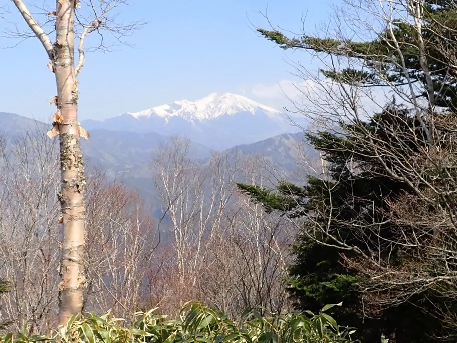 登山道沿いには大きなヒノキやミズナラが多くやはり裏木曽、奥美濃の山とは違った雰囲気を醸していた。またダケカンバの枝が上に真っ直ぐ伸びてモデルのようにスタイルが良い。雪深い奥美濃のどっしりとした太い幹と枝をくねらせた容姿とは異なっていた。