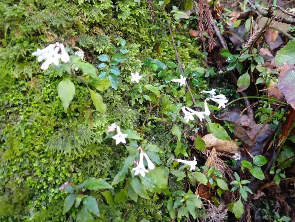 しかし、下るに従い林道は広くなり悪路はやがて舗装道路となった。両手を振って歩くゆとりが生まれると道脇の名も知らぬ可愛い小花にカメラを向けた。