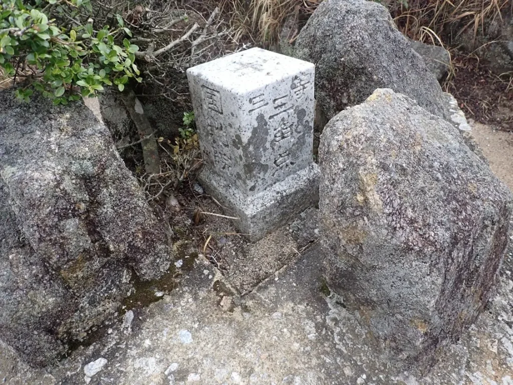 Ⅲ等三角点標石柱は大きな保護石にがっちり守られていた。30分ほどの頂上滞在中は夏用ダウンを羽織って過ごしたがトレランナーの若者は半袖Tシャツで登って来た。羨ましい。