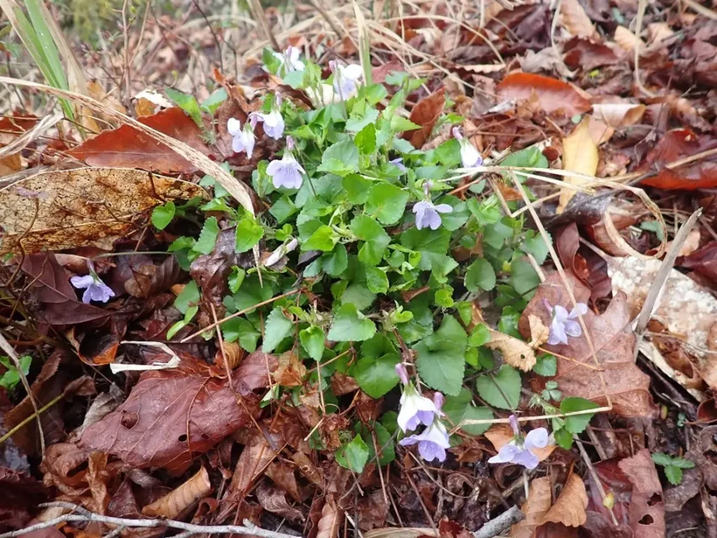 自然歩道一帯は元々ブナの林で有ったが古くから度々伐採された結果、アカシデ、イヌシデ、リョウブ等の「シデの林」となったようだ。林の中で見つけたスミレが可愛かった。