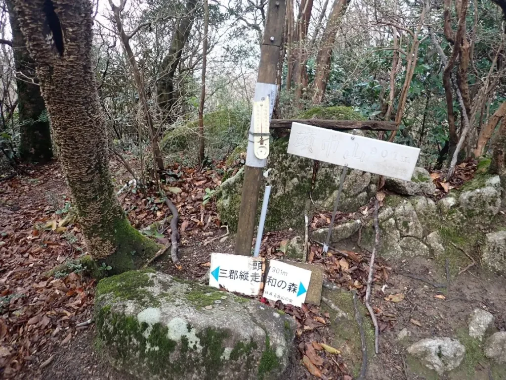 全く人気のない頭巾山(とっきんさん)の最高点、温度計が置いてあり気温は5℃だった。