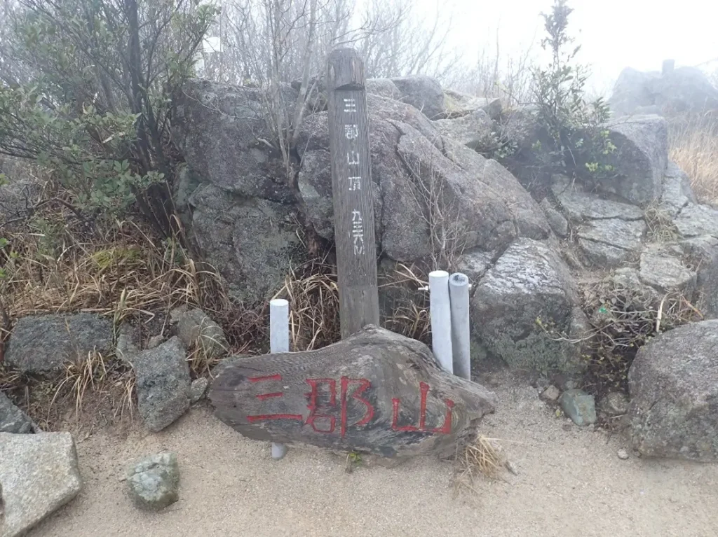 三郡山山頂には男女2名の登山者が居た。生憎の霧で展望は全く効かなかったが天気が回復すれば福岡市内は勿論玄海灘迄見渡せた。眺望のすぐれた山と下山後に聞いて知った。