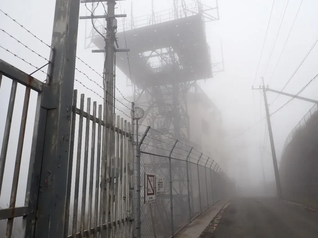 更に自然歩道を東に進むと「航空監視レーダー局」の施設に突き当たった。鉄条網に沿って舗装道路に出ると両脇の施設に挟まれ北に向きを変えて山頂方向へ進んだ。