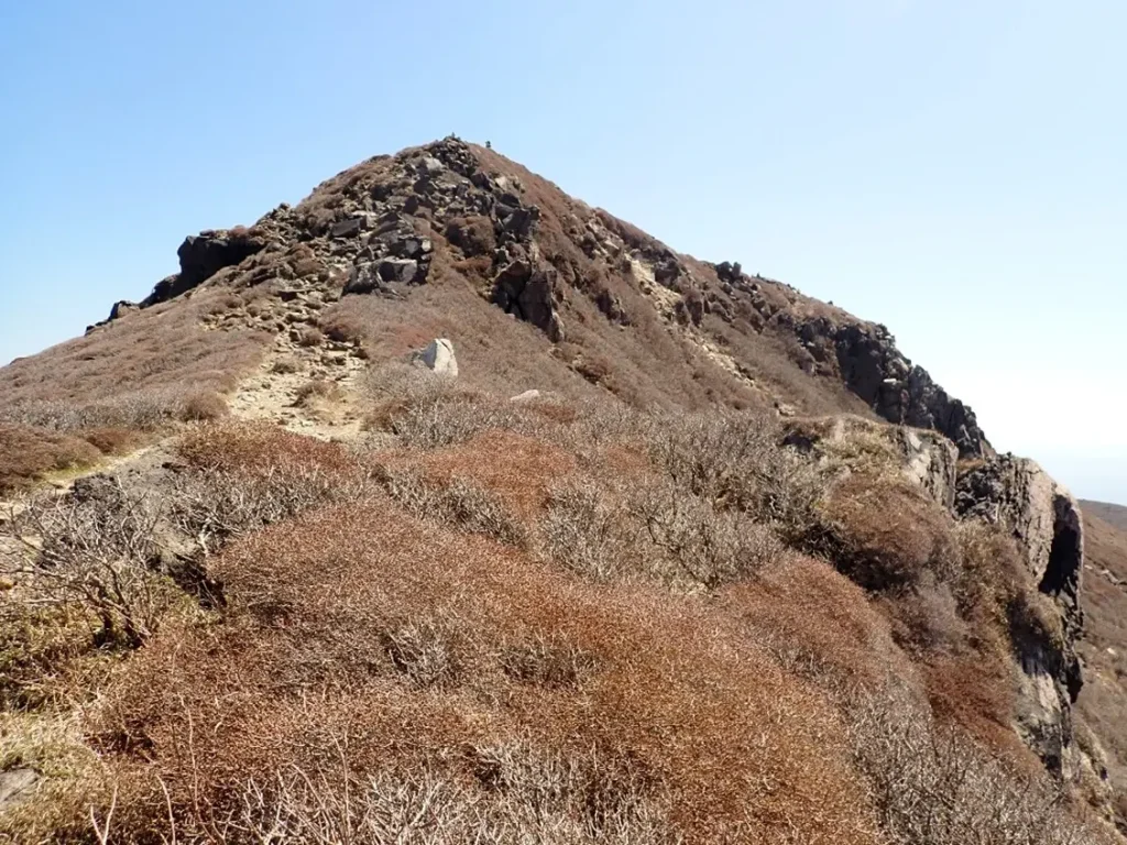 目指す、九州本島最高峰の中岳が目の前で山頂に立つ人が確認出来た。だが直下の岩が疲れた老人の身体をもて遊ぶ、荒い息づかいで岩を一段、又一段数えて越えた。